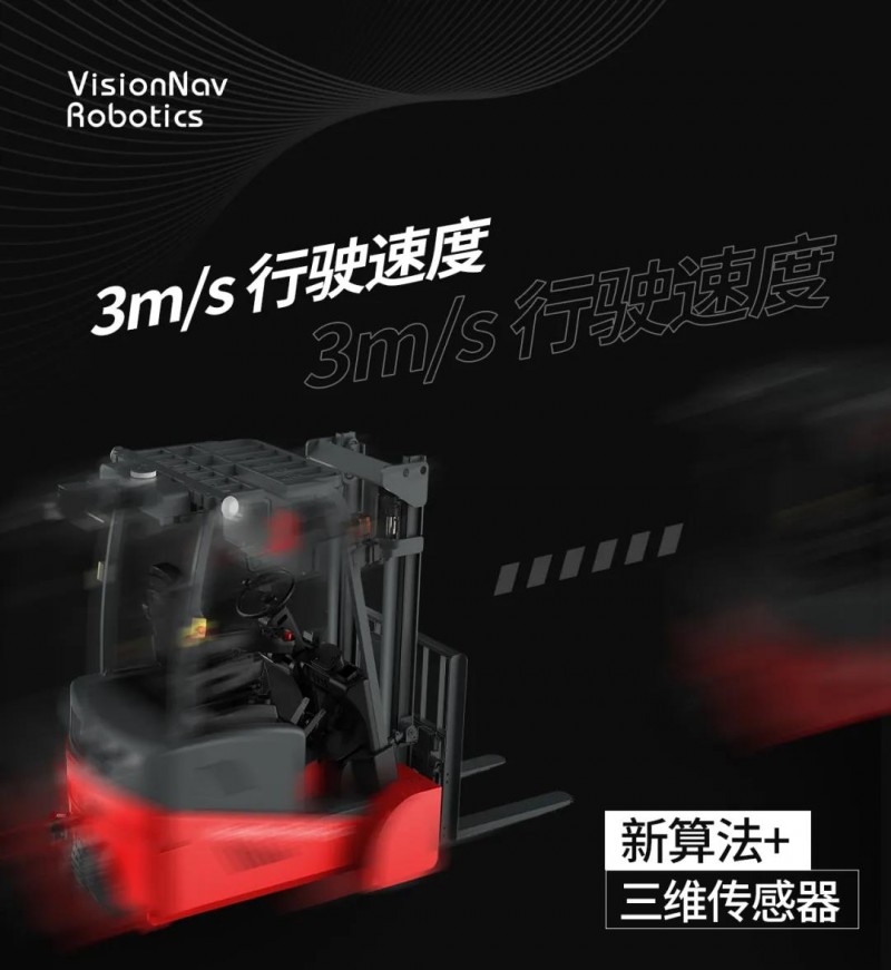 車頭方向:采用3D激光+視覺的感知方案,感知距離和視野得到大幅提升,確保100%安全的情況下,VNP20具備目前無人叉車最大行駛速度3.0m/s。同時,通過對障礙物目標的深度學習和分類,可實時判斷并進行自主繞障。