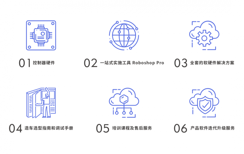 仙工智能“控制器解決方案”為客戶提供的不僅是一臺 SRC 控制器,而是涵蓋仙工智能龐大車型庫及先進技術支持的全套技術服務。方案包括: