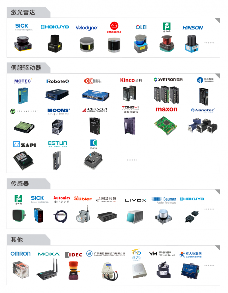 SRC 核心控制器功能強大,適配廣泛,已完成和各大傳感器、驅動器廠商的產品適配,并繼續和他們密切合作,共建 AMR 的產業生態。