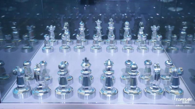 其中,結(jié)合中國(guó)博覽會(huì)的國(guó)際特色和廣州地標(biāo),還展示了由五軸聯(lián)動(dòng)數(shù)控機(jī)床加工而成的廣州塔小蠻腰和國(guó)際象棋金屬模型,凸顯了五軸聯(lián)動(dòng)數(shù)控機(jī)床的高難度異形精密零件加工工藝,讓觀眾眼前一亮。