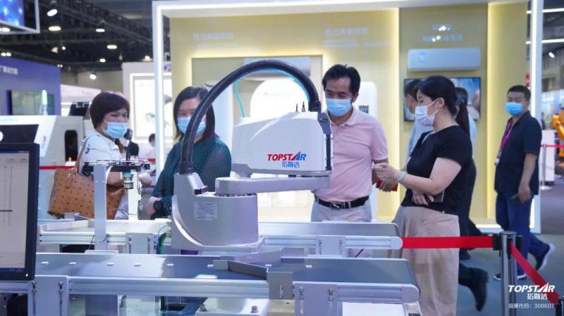 在展覽現(xiàn)場(chǎng),拓斯達(dá)的五軸聯(lián)動(dòng)數(shù)控機(jī)床和機(jī)器人視覺跟隨抓取和檢測(cè)系統(tǒng)吸引了許多觀眾和參展商的廣泛關(guān)注。
