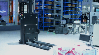在國自展臺我們還看到一臺叉式機器人在展示平庫堆疊功能,機器人將兩疊壘放著較大體積的礦泉水托盤精準(zhǔn)地堆疊,給到場觀眾帶去較為直觀的感受。