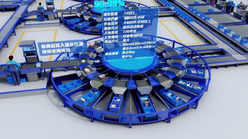 訂單分揀是倉儲作業中最復雜、作業量最大的環節。為解決傳統揀選過程中的揀選密度低、每批次行走距離遠、訂單揀選效率低等問題,曠視自主研發了智能圓形播種機,能夠更好地適應海量復雜訂單的作業需求。