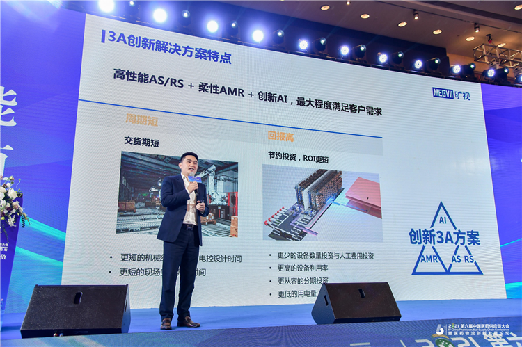 “通過集合高性能AS/RS+柔性AMR+創(chuàng)新AI,曠視3A智慧物流解決方案具備周期短和回報高的特點”,曠視科技物流業(yè)務銷售副總裁程昌順介紹到,“該方案通過更短的機械組裝、電控設計時間和現(xiàn)場安裝調試時間,可縮短交付周期;通過更少的設備和人工投資、更高的設備利用率、更低的用電量、更從容的分布投資等,提高醫(yī)藥物流的ROI(投資回報率)。”