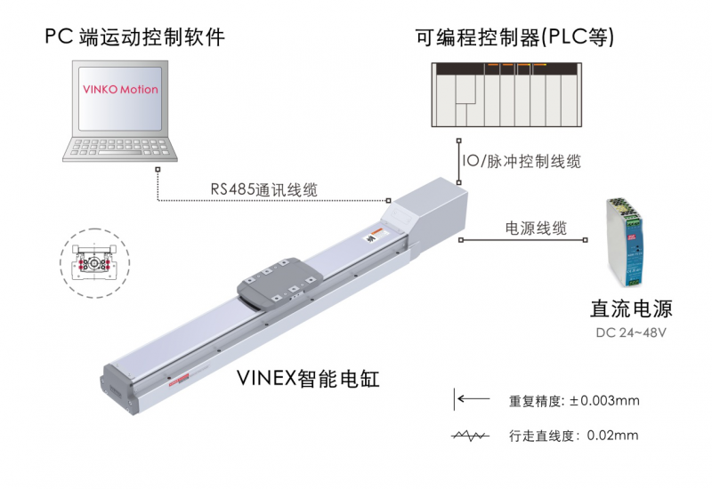 無需外置驅(qū)動(dòng)器:Vinex采用驅(qū)動(dòng)控制集成設(shè)計(jì),無需外置驅(qū)動(dòng)器,通過電源線和通訊線纜即可驅(qū)動(dòng)電缸。節(jié)省設(shè)備空間,大幅簡(jiǎn)化走線和布線的成本。