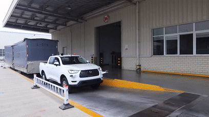 基于廠內(nèi)智能化物流設(shè)備的聯(lián)動(dòng),無(wú)人駕駛物流車還可進(jìn)行自主裝卸貨、散料上貨等操作,同時(shí)基于拖斗精準(zhǔn)運(yùn)動(dòng)學(xué)模型,它能夠?qū)崿F(xiàn)帶拖斗倒車,并保證倒車位置精度,實(shí)現(xiàn)拖斗精準(zhǔn)對(duì)接裝卸平臺(tái),提升裝卸貨效率。