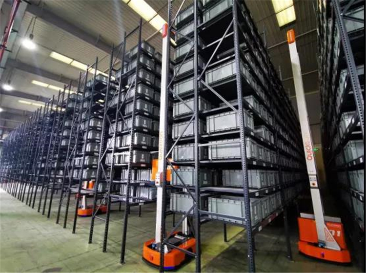 2021年,快倉智能與上海虹迪物流科技有限公司聯(lián)合打造了虹迪智慧物流Quick Pick項(xiàng)目,智能倉的整體面積逾1000㎡,采用11層高密度AGV貨架,貨位一層改造為一半緩存位一半通道,這樣空載小車可從緩存位下方穿行,帶載小車可從通道穿行。