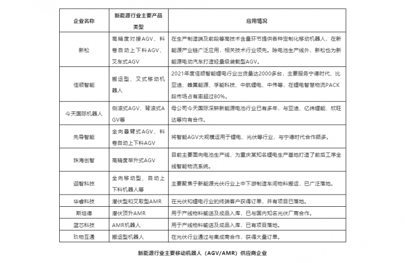 新松在2021依靠在前段工序積累的競爭優(yōu)勢,2021年拿下了多個鋰電行業(yè)訂單;佳順智能作為最早進入鋰電行業(yè)的AGV企業(yè)之一,與多家鋰電企業(yè)建立了合作關(guān)系。據(jù)張金亮透露,當前佳順智能在新能源業(yè)務(wù)已占公司整體業(yè)務(wù)的40%,未來占比還將進一步提高。