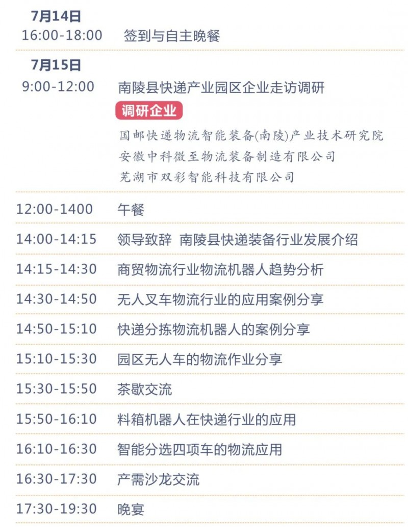 為了深入快遞物流行業智能分揀、智能倉儲及園區物流等多環節對于工業移動機器人(AGV/AMR)的需求調研,也為了推動AGV/AMR在快遞行業細分應用市場的產需交流,7月15日,CMR產業聯盟特別組織“南陵縣·智慧物流裝備與倉儲智能化”主題沙龍活動,邀請產業鏈企業共聚南陵,參觀走訪。